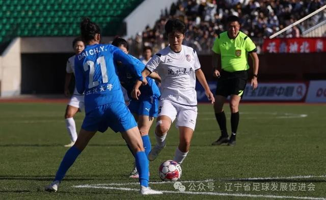 丢球后的辽宁沈阳沈北禾丰女足没有慌乱,依然保持前场高压,逼迫对手犯错。