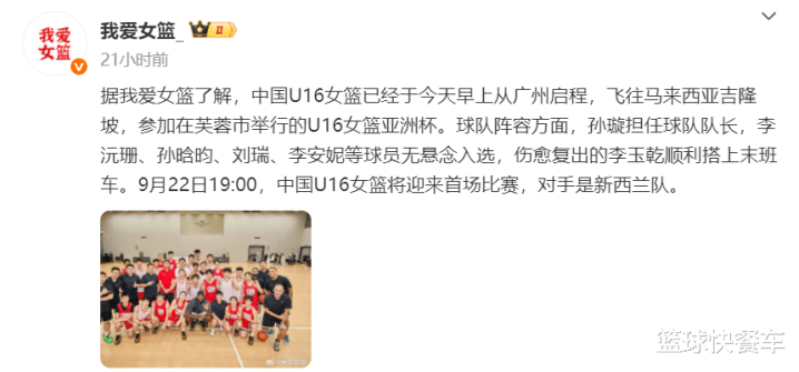 2025年中国女篮最后一项国际大赛即将打响,U16中国女篮将出战亚青赛。根据知情人士透露,中国队已经在昨天启程飞赴马来西亚吉隆坡,并且经过短暂休整后,他们将出战U16亚青赛。目前,中国队大名单已经基本出炉了,孙璇将担任中国队队长,李沅珊、李安妮等人入选。而且,值得一提的是,此前一直有消息传出,李月汝的妹妹李玉乾或许无缘亚青赛。不过,根据最新消息,她已经伤愈复出,并且跟随球队前往马来西亚了。
