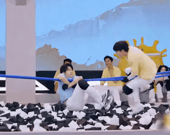 李昀锐刚把粉笔摔得四分五裂,没过一会儿,张真源也来个大马趴,把另一根粉笔摔得粉身碎骨。
