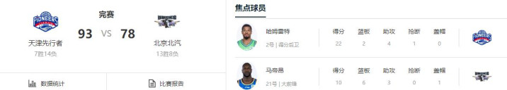 天津队进攻磕磕绊绊,但一直能稳住局面,外援哈姆雷特扛大旗,本土球员赖俊豪表现强硬,他们顽强抵抗,没被轻易拉开距离。北京男篮全民皆兵,没有特别突出得分点,大部分队员均有一定贡献。
