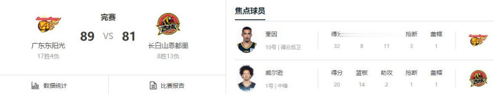 比赛继续进行,吉林男篮的韧性值得点赞,赵率舟末节成为替补神兵,一度帮助队伍拉回悬念,只可惜时间所剩无几,他们没能绝地翻盘。广东队一如既往地容易松懈,总是会露出破绽,最后阶段及时止颓,奎因带队稳住阵脚,贡献32分+11助攻8板的全能数据,成为赢球的重要功臣。