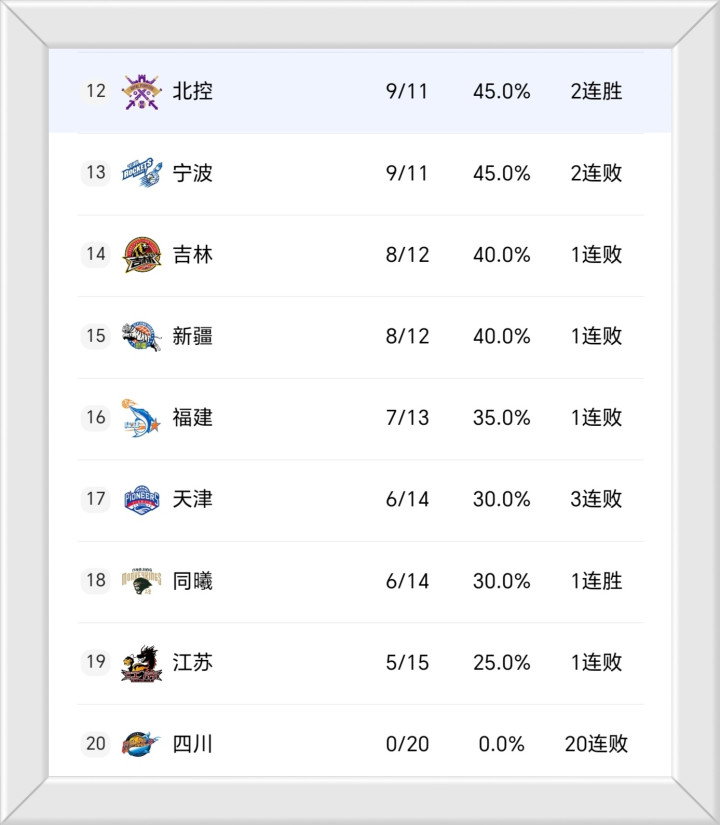 ③、辽宁上升2名来到第11位,四川依然一胜难求,赛季20连败继续垫底。