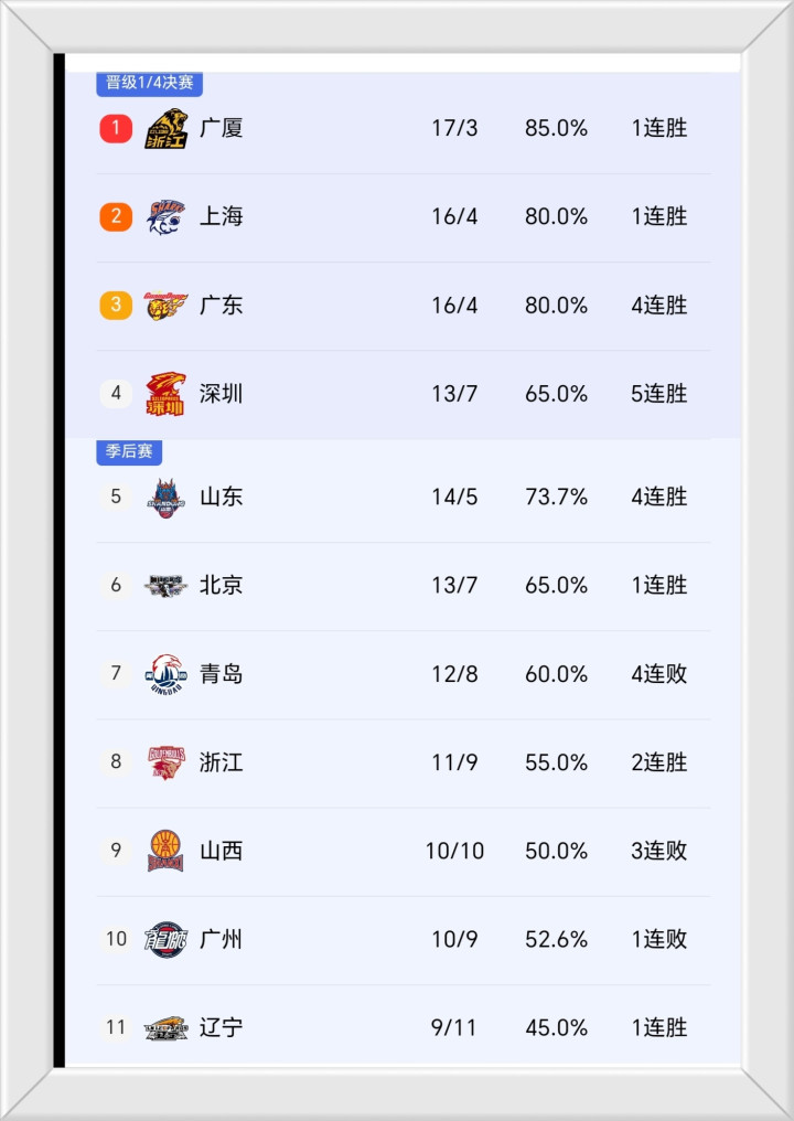 几家欢喜几家愁,卫冕冠军广厦、夺冠热门上海队都取得了胜利,赛季大黑马青岛连败继续,而换了主帅的4冠王辽宁男篮则用一场52分的大胜血洗前总冠军。