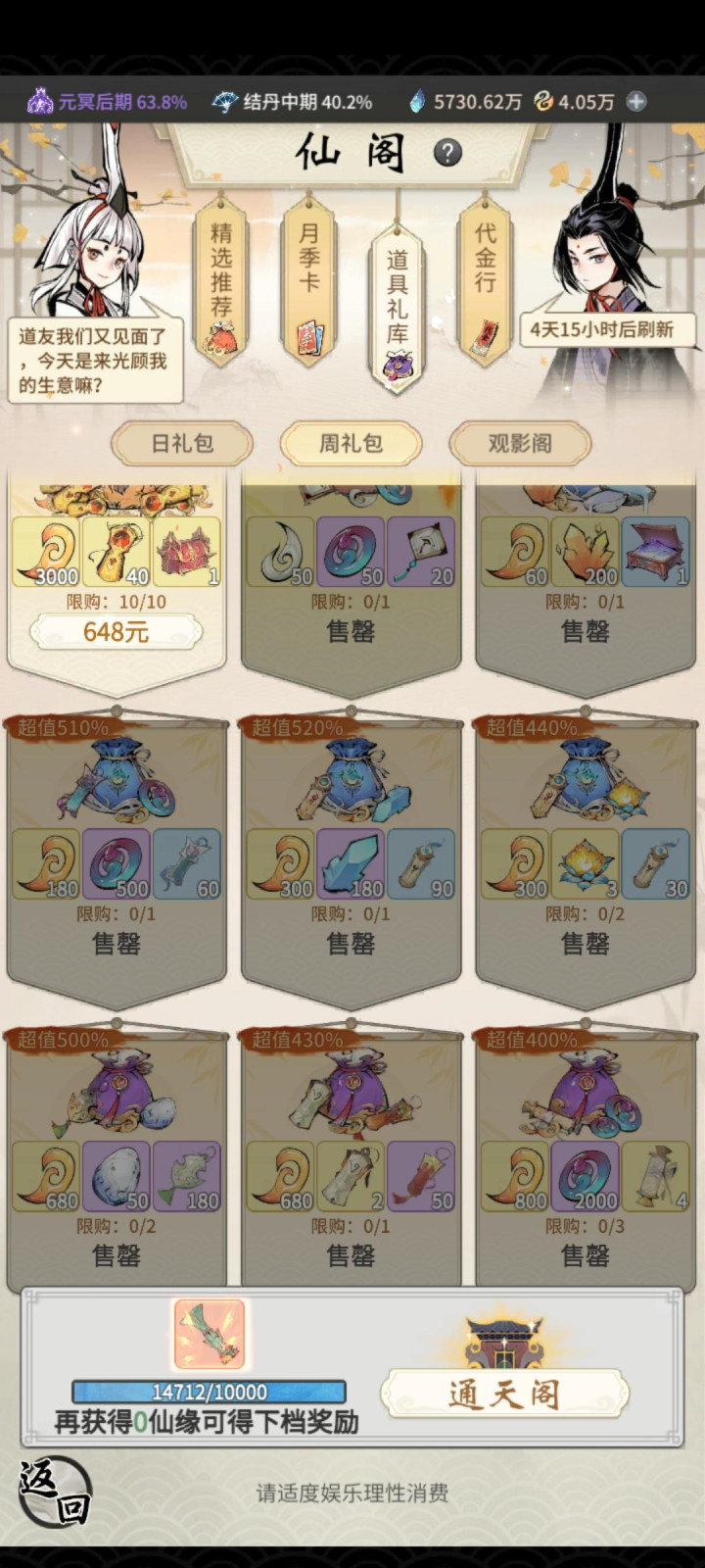 > 那还说啥呀,两天1.5拿下红尘仙洞府呗