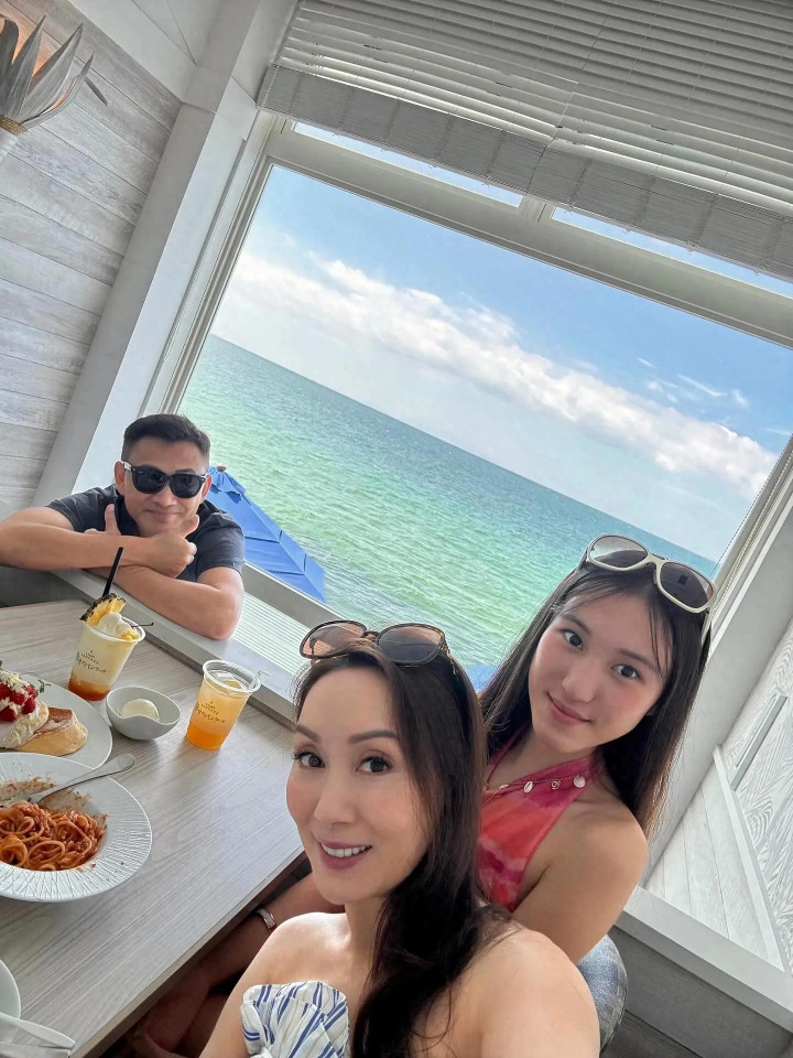 照片中,一家三口坐在海边餐厅享受下午茶,真的好惬意。郭可盈负责拿手机自拍,林文龙对镜比赞耍帅,女儿林天若温柔看向镜头。今年15岁的女儿好漂亮,出落得亭亭玉立,模样清秀甜美,很像爸爸林文龙,气质则是很像妈妈,大家闺秀范。