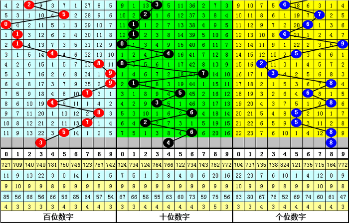 百位分析:该位最近10期出现范围在1-9之间,波动了9个点位,波动范围较大,上期开出号码5,下降了2个点位,本期看好该位号码下降。另外该位最近10期大小比为7:3,小 号表现较冷,本期看好小 号逐渐回补,参考号码3。