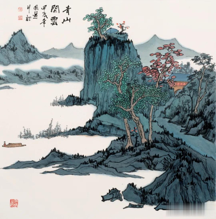 五、《青山闲云》:扁舟载月,奇峰拄天