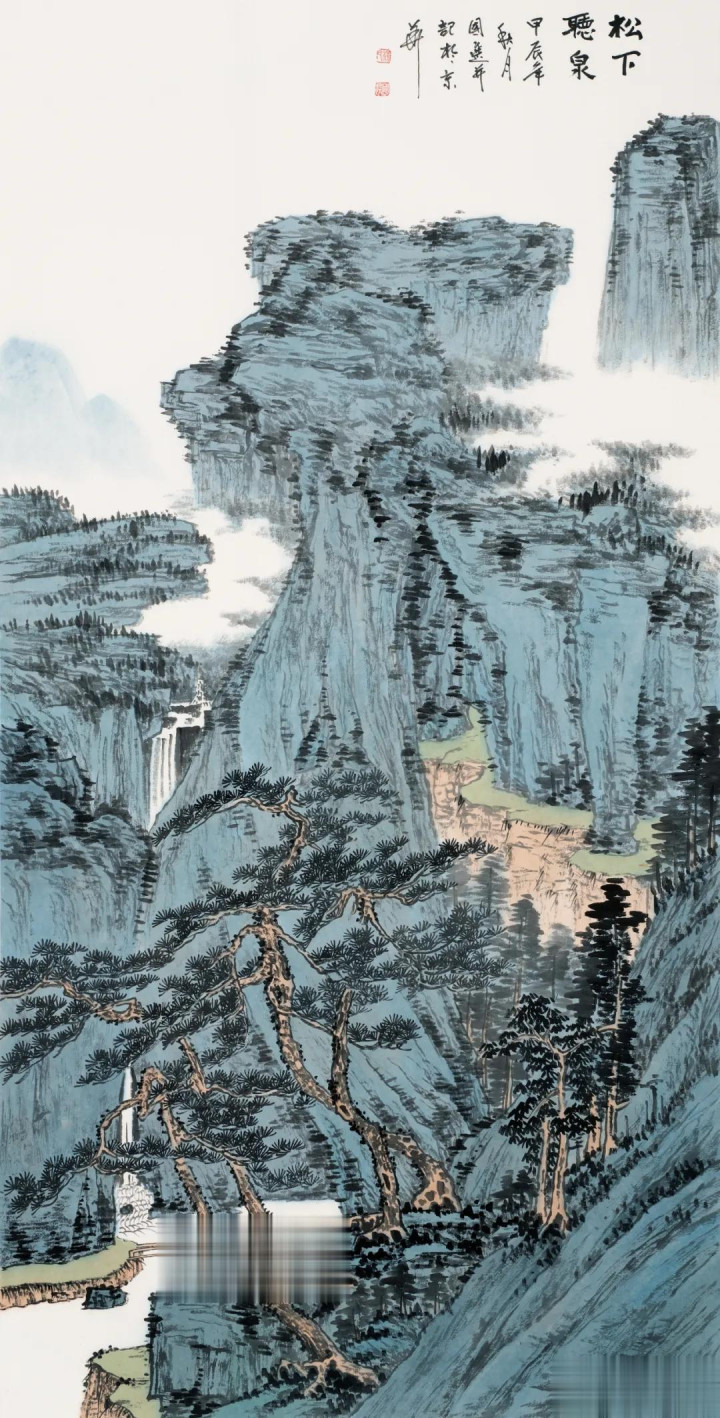 二、《松下听泉》:孤松待鹤,飞瀑醒心
